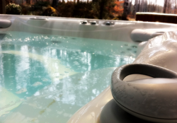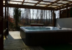 En varmt avslappnande upplevelse ute i skogen. Sköna vattenstrålar masserar ryggen mjukt och behagligt.
